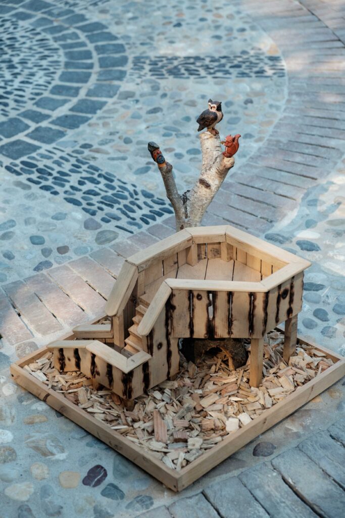 „Eine spezielle Anfertigung aus dem langlebigen Kastanienholz rundet den Sitzplatz ab